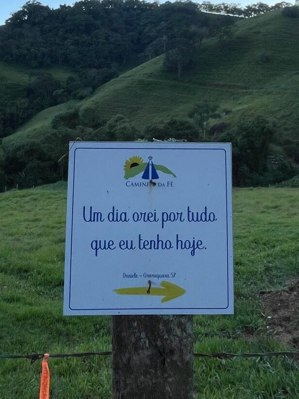 Ao longo de todo o percurso do Caminho da Fé, encontramos diversos tipos de mensagens. Placas de incentivo, de agradecimento, de louvor, de informação, entre outras. Elas aparecem nas subidas, nas descidas e, muitas vezes, exatamente quando o cansaço começa a pesar.
