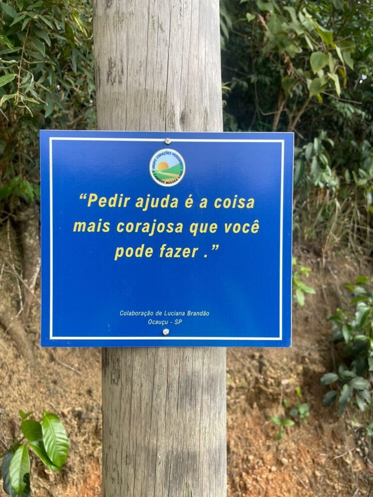 Não sei dizer se foi a própria Luciana quem percorreu o Caminho e colocou essa plaquinha, mas a mensagem é direta e profunda: no Caminho, não hesite em pedir ajuda e não negue ajuda a ninguém. Todos ali estão na mesma situação que você e esperam exatamente isso. Ajudar o próximo é parte do sentido da vida.