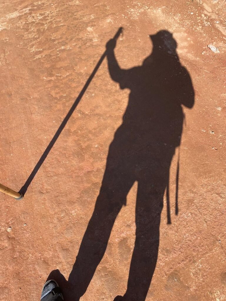 Ela caminhava sozinha, mas com planejamento impecável. Saía mais tarde que nosso grupo e, todos os dias, nos alcançava. Sempre nos comprimentavamos e trocavamos algumas palavras. Isso as vezes acontecia em uma parada de descanso também.